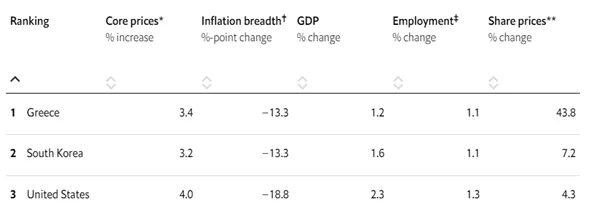 כלכלת יוון המשיכה להציג ביצועים משופרים גם ברבעון הרביעי של 2023. ירידה באבטלה, עלייה בתוצר, עלייה בהשקעות הזרות ונזילות גבוהה של המערכת הבנקאית. לאחר העלאות הדרוג ברבעון הקודם, ההכרה בשיפור שחל במדינה התבטאה בין השאר גם בפרסום מחקר של האקונומיסט, בו נבחרה יוון במקום הראשון בביצועים לשנת 2023.