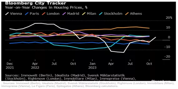 כאמור, את העליות בשוק הדיור הובילה אתונה, שממשיכה לחוות ביקושים גבוהים ועליות מחירים. גם בהשוואה לערי בירה נוספות באירופה הנהנות מביקוש גבוה, עדיין אתונה מראה יציבות בביקושים לאורך זמן, כפי שמשתקף בנתוני הדיווח המצורף של רשת בלומברג.